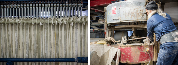Our premium-quality clay bodies have a worldwide reputation, especially our unrivalled panmilled clay blends which are manufactured using traditional machinery and a process unique within the industry. Did you know that our panmills have a sweet heritage? They were once used at Cadbury’s to grind the cocoa nibs for chocolate production. These unique machines were purchased by Potclays in the 1960’s, were slightly modified, and the rest—as they say—is history. Nowadays, our clay bodies are enjoyed around the world, as far afield as New Zealand. You can read more below about our production processes and watch our videos.
