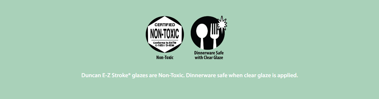 Duncan E-Z Stroke® glazes are Non-Toxic. Dinnerware safe when clear glaze is applied.