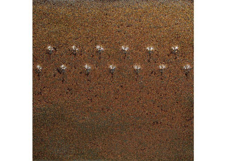 PC-69 Cosmic Gold Dust is a sparkly gold glaze with subtle specks of reds and browns in the light.