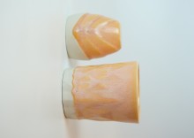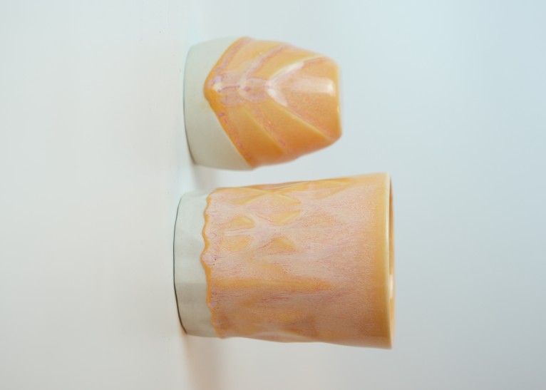 • Bright artistic glaze with salmon-orange base and yellow surface vibrations, producing striking effects. In thin applications, the vibration effect decreases and the orange areas dominate. Thicker applications create white and yellow vibration transitions, enhancing the artistic effect.