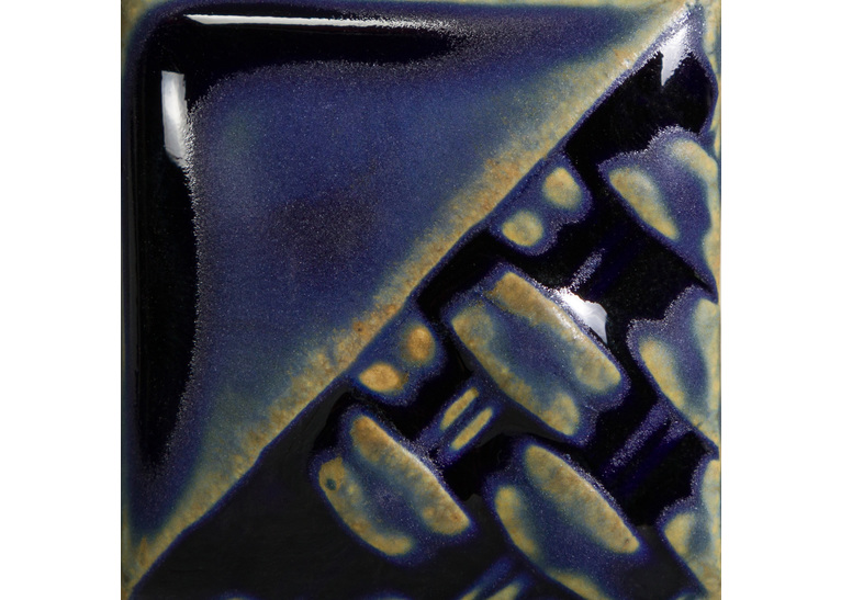 Cone 6: Azurite is a soft matte, cobalt blue glaze that will pool dark and glossy and break a light brown. Cone 10: colour changes to green where thin/breaking and remains dark blue where thick/pooling. Increased movement. Tip: This glaze can be very mobile; Recede coats to avoid run off on vertical pieces and practice caution in combination. Note: Not recommended for dinnerware due to surface durability.