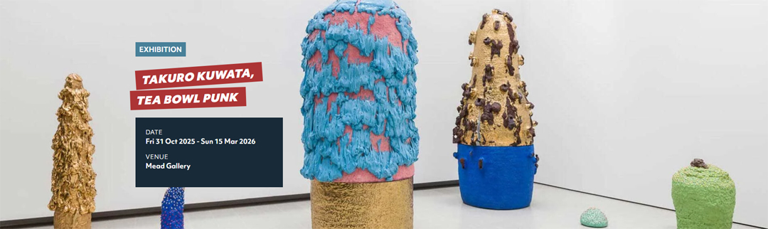 In autumn 2025, Warwick Arts Centre opened Tea Bowl Punk, the most comprehensive exhibition to date in Europe by the Japanese artist and master ceramicist Takuro Kuwata. Inside of the exhibition and alongside Kuwata’s bulbous ceramic forms is a studio space curated by Modern Clay – an artist collective based in Digbeth, Birmingham. Generously supported by Potclays, the studio is open daily and invites audiences to get closer to Kuwata’s sculptures by having the opportunity to create their own ceramic vessel. Modern Clay have developed a series of prompts which support makers to produce their own Japanese chawan or teabowl using a pinch pot method – the chawan is at the heart of all Kuwata’s sculptures and has a long history with Japanese ceramic practice.