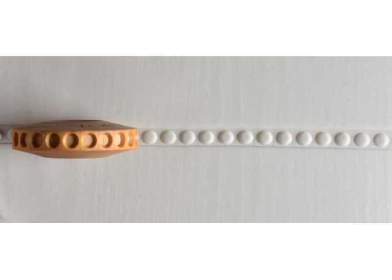 Finger Rollers have a rolling design face that is 0.8 cm (8 mm) across. The Finger Rollers are designed to roll across clay or other soft media to create patterns along straight lines, curvy lines, and borders.