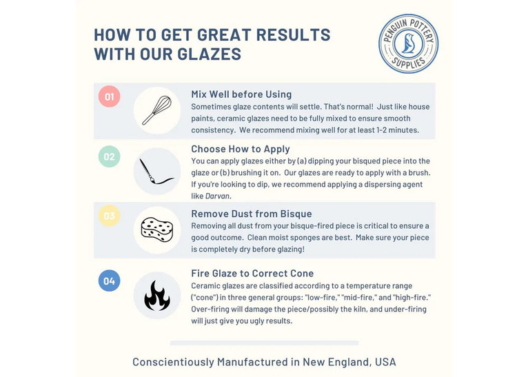 - [EASY TO USE] - You can paint our glow in the dark glaze onto greenware, bisqueware or already-glazed finished work . This glaze should be fired to a fast cone 06. Any hotter and the glaze may lose its glow. Contents may settle at the bottom of the jar. Stir with every dip of your brush. The glow glaze doesn’t have a glossy smooth finish and that’s normal. For a glossy finish, cover it with our low fire clear glaze formulated (sold separately) and fire them together at cone 06.