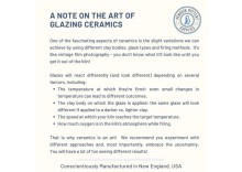 • [FIRE IN POTTERY KILN] - Pottery glaze must be fired in a pottery kiln. Do not fired in a kitchen oven. Ceramic glazes are classified according to a temperature range ("cone") in three general groups: "low-fire," "mid-fire," and "high-fire." Your ceramic kiln must be temperature calibrated to confirm it is firing at the target temperature / cone. Our glow glaze is nontoxic but has not been tested for food safety. We don’t recommend painting this glaze on surfaces that will have food on them.